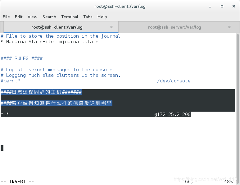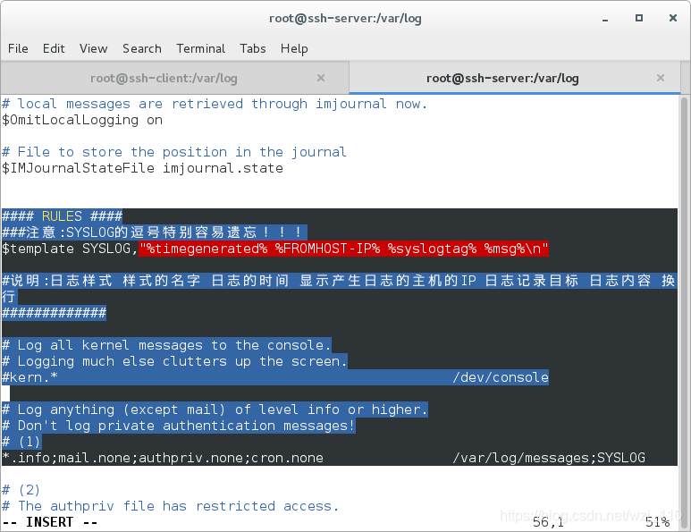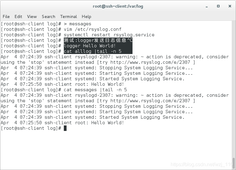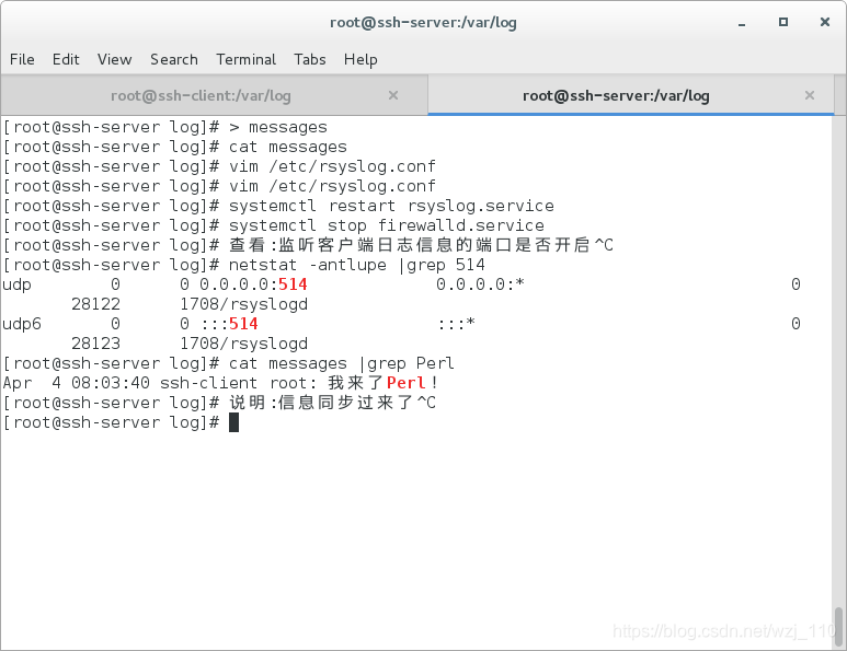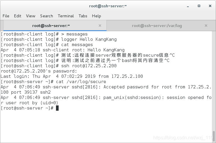 (1)清空client的messages的信息,logger产生日志,观察messages文件内容(2)清空server的secure的信息,client启动ssh,观察server的secure文件的内容