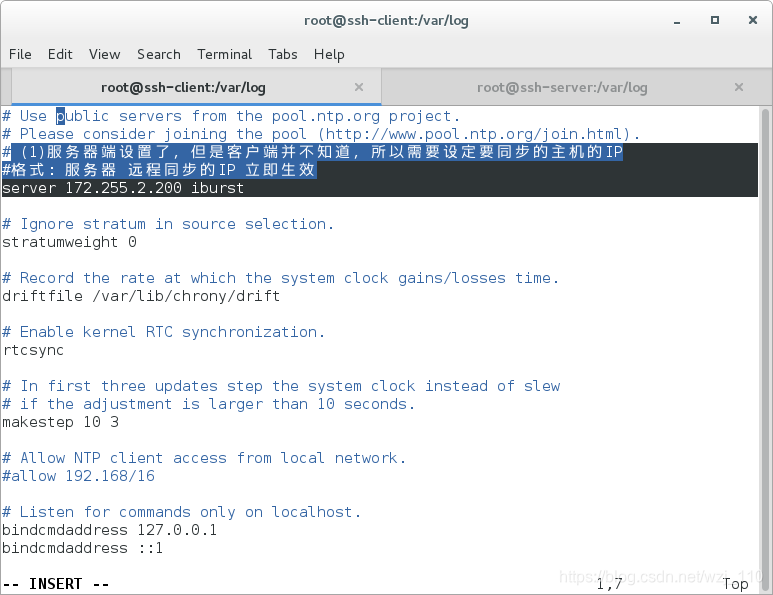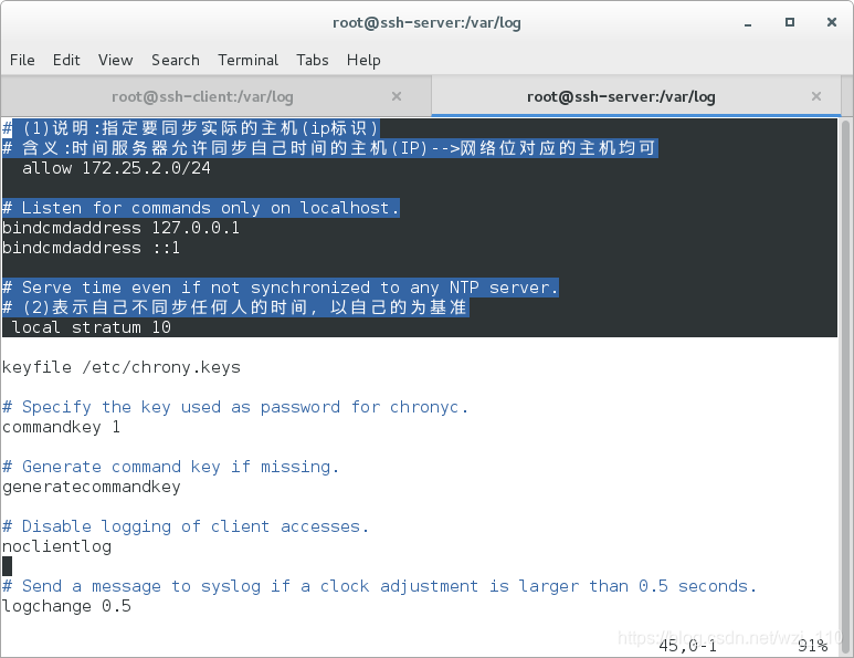 服务端设置:编辑 /etc/chrony.conf配置文件